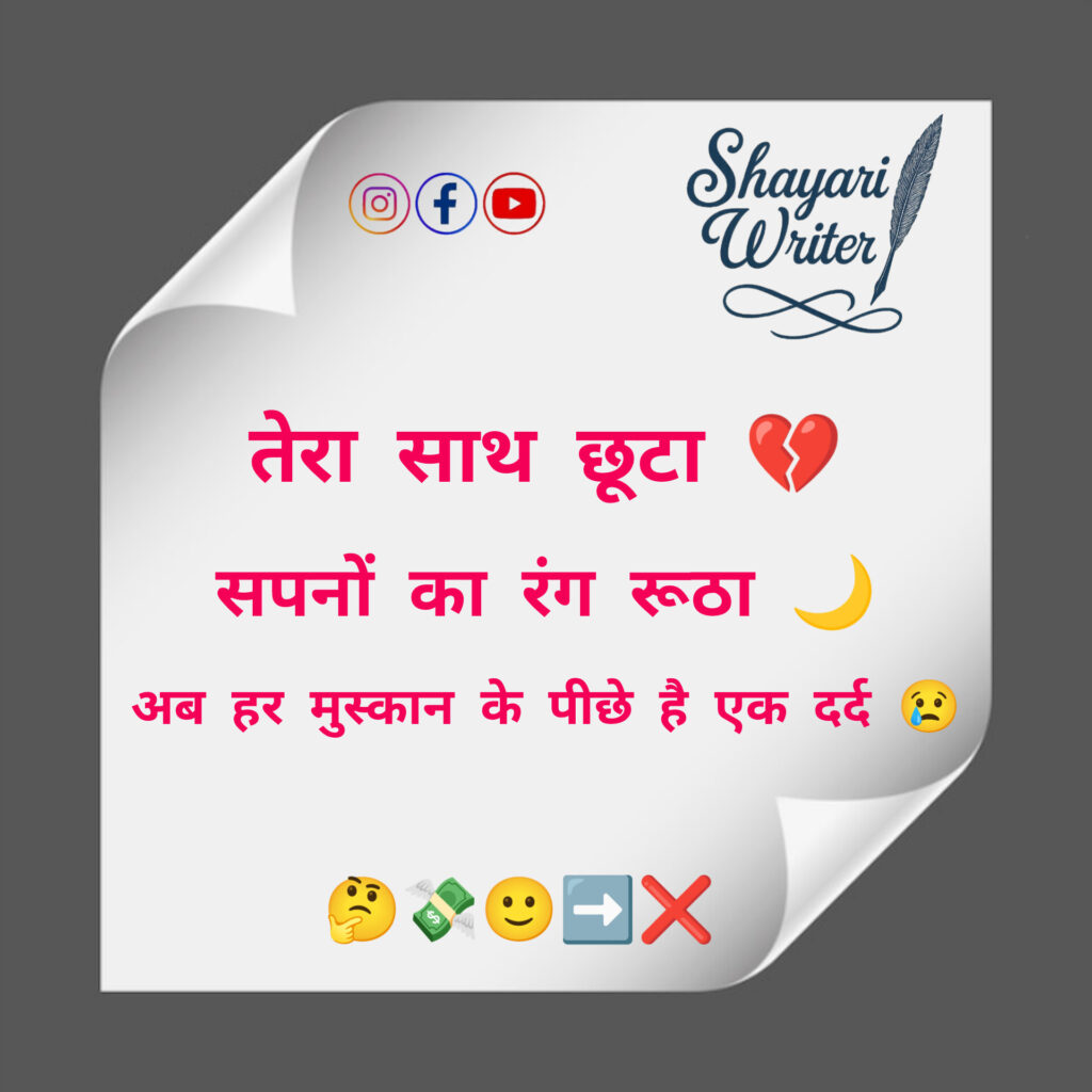 Sad shayari तेरा साथ छूटा 💔सपनों का रंग रूठा 🌙अब हर मुस्कान के पीछे है एक दर्द 😢 admin May 25, 2025 Author admin Continue Reading Previous Previous post: Salary आती है,बिल मुस्कुराते हैं,Savings कोमा में चली जाती है।💸➡️😬➡️🛏️📉Next Next post: पत्नी: सुनिए जी, मैं मोटी लग रही हूं क्या?पति: नहीं तो… बिल्कुल नहीं…पत्नी: झूठ मत बोलो!पति: ठीक है, फिर हां लग रही हो!अब पति ICU में है…🚑 Leave a Reply Cancel replyYour email address will not be published. Required fields are marked *Comment * Name * Email * Website Save my name, email, and website in this browser for the next time I comment. Related News 💧 अब मोहब्बत से भी डर लगता है,💔 टूटे दिल का दर्द फिर जलता है… November 10, 2025 🌙 वो बिछड़ा तो वक़्त थम सा गया,💧 पर यादों का सिलसिला चलता गया… November 6, 2025