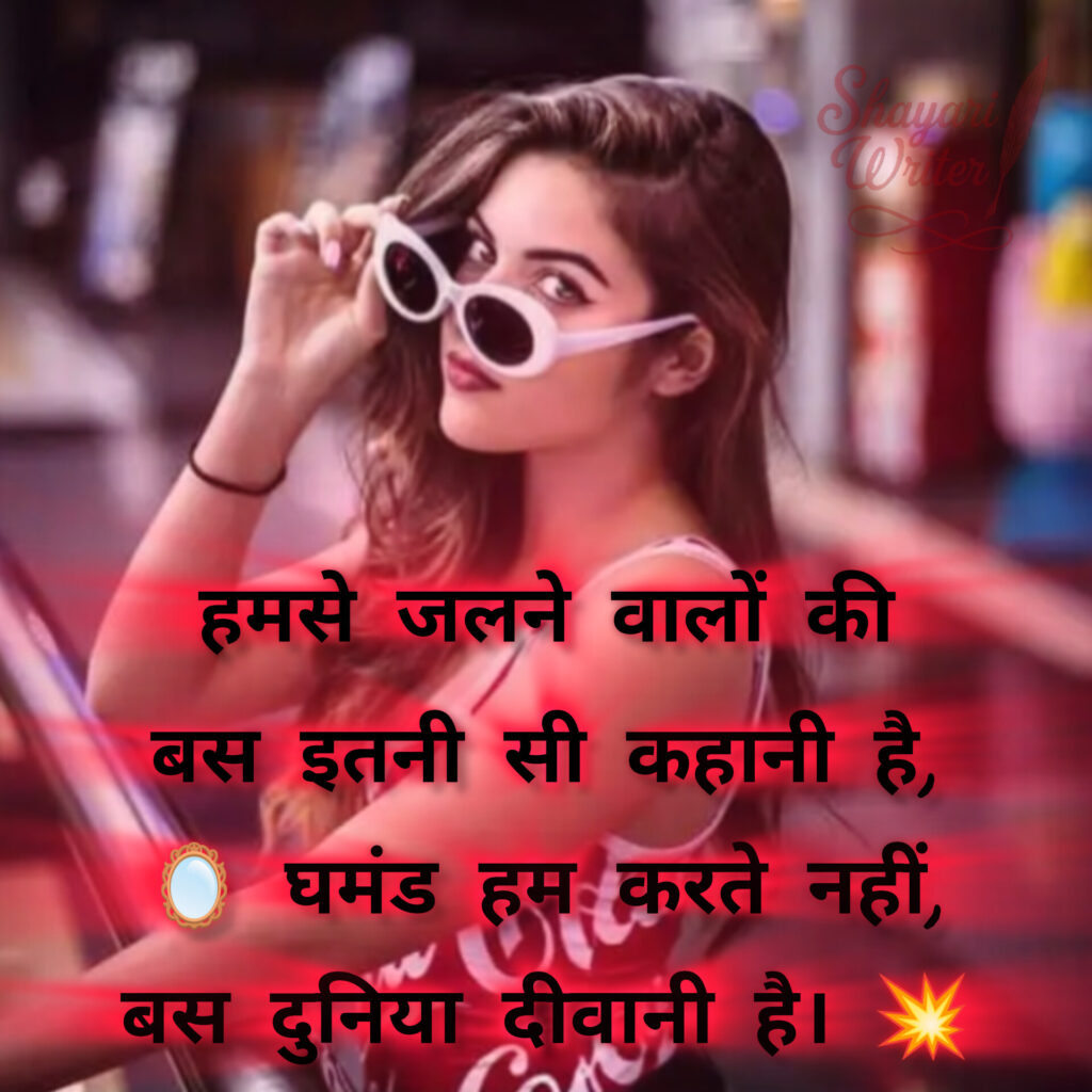 Attitude shayari हमसे जलने वालों की बस इतनी सी कहानी है,🪞 घमंड हम करते नहीं, बस दुनिया दीवानी है। 💥 admin July 3, 2025 Author admin Continue Reading Previous Previous post: कहानी शीर्षक: “बैटरी लो है, पर मोहब्बत फुल चार्ज!” 🔋❤️Next Next post: हम तो वो खिलाड़ी हैं जो 🎯👑 औकात से नहीं, अपनी बात से जीतते हैं। 🎤 Leave a Reply Cancel replyYour email address will not be published. Required fields are marked *Comment * Name * Email * Website Save my name, email, and website in this browser for the next time I comment. Related News औक़ात की बात मत कर पगली,हम तो वो हैं जो आइना भी देखकर शर्मा जाए।😎🥳 July 18, 2025 👑 हमसे मुकाबला करना आसान नहीं,🛑 क्योंकि हम वहाँ खड़े होते हैं जहाँ लोग खड़े होने से डरते हैं।💥 July 14, 2025