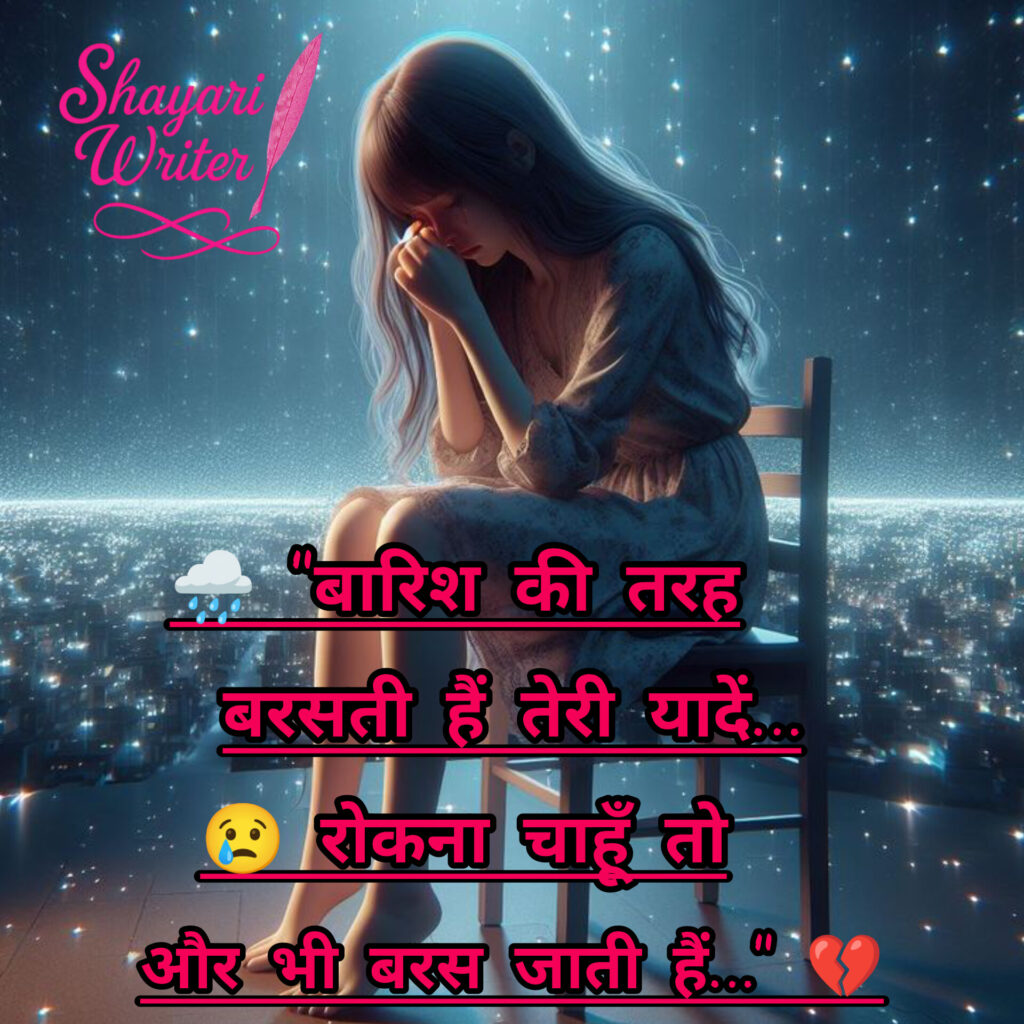 Sad shayari 🌧 “बारिश की तरह बरसती हैं तेरी यादें…😢 रोकना चाहूँ तो और भी बरस जाती हैं…” 💔 admin August 12, 2025 Author admin Continue Reading Previous Previous post: 😞 “दिल के ज़ख्म भी अजीब होते हैं…💔 दिखते नहीं, बस महसूस होते हैं…” 🌌Next Next post: 💔 “तेरे बिना अब जीना मुश्किल है…😭 लेकिन तेरे साथ रहना नामुमकिन है…” 🌙 Leave a Reply Cancel replyYour email address will not be published. Required fields are marked *Comment * Name * Email * Website Save my name, email, and website in this browser for the next time I comment. Related News 💧 अब मोहब्बत से भी डर लगता है,💔 टूटे दिल का दर्द फिर जलता है… November 10, 2025 🌙 वो बिछड़ा तो वक़्त थम सा गया,💧 पर यादों का सिलसिला चलता गया… November 6, 2025
