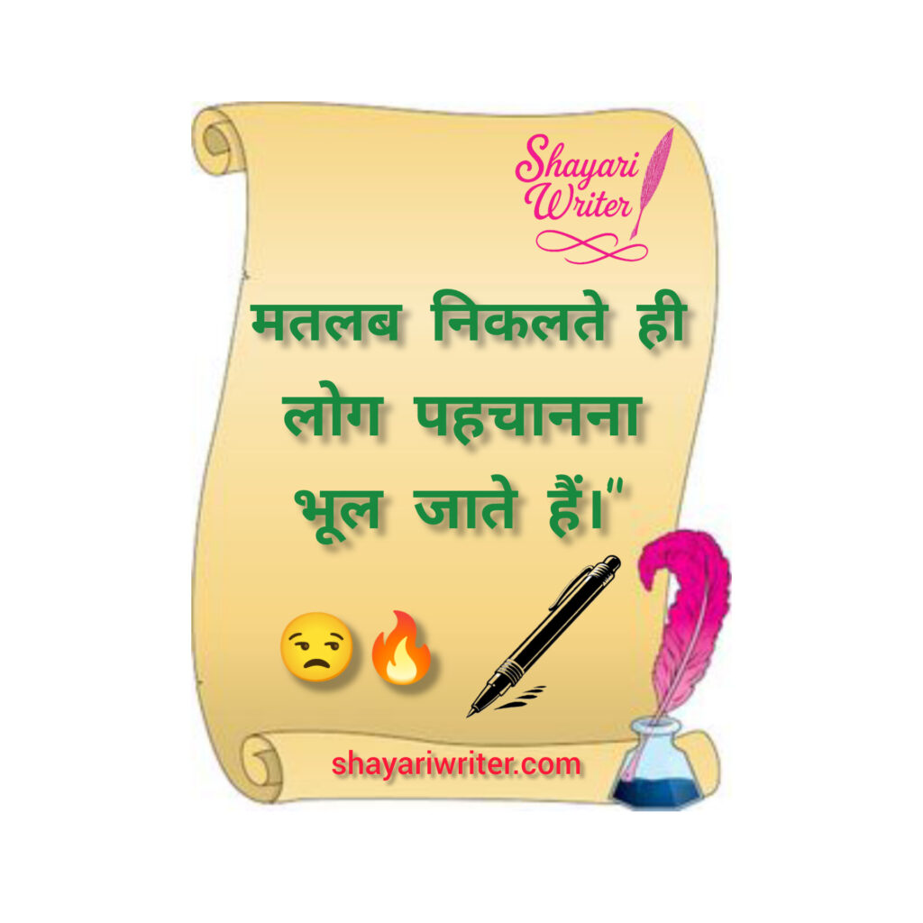 Kadva Sach 😒🔥”मतलब निकलते ही लोग पहचानना भूल जाते हैं।” admin September 5, 2025 Author admin Continue Reading Previous Previous post: 😏🔥”लोग पीछे से काटते हैं और सामने मुस्कुराते हैं,यही सबसे बड़ी कड़वी सच्चाई है।”Next Next post: 💔🥀”दिल से निभाने वाले हमेशा हार जाते हैं,और दिखावा करने वाले जीत जाते हैं।” Leave a Reply Cancel replyYour email address will not be published. Required fields are marked *Comment * Name * Email * Website Save my name, email, and website in this browser for the next time I comment. Related News 😒🥀”आजकल हर कोई सिर्फ इस्तेमाल करना जानता है,निभाना किसी को नहीं आता।” September 13, 2025 😔🖤”रिश्ते निभाने की कोशिश हमेशा वही करता है,जिसका दिल टूट चुका होता है।” September 12, 2025