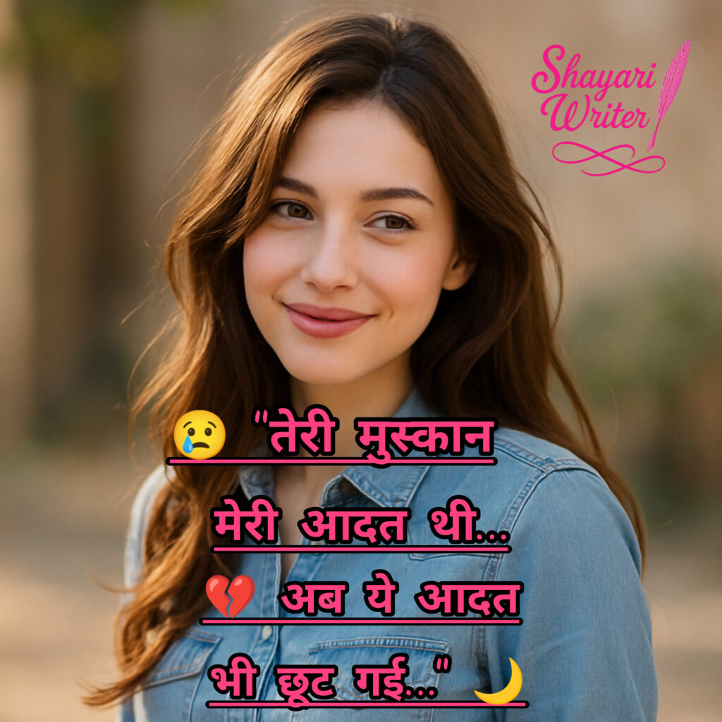 Sad shayari 😢 “तेरी मुस्कान मेरी आदत थी…💔 अब ये आदत भी छूट गई…” 🌙 admin August 18, 2025 Author admin Continue Reading Previous Previous post: 💔 “हमने चाहा था तेरे साथ बूढ़े होना…😭 तूने तो बीच रास्ते में छोड़ दिया…” 🌌Next Next post: 💔 “हमने चाहा था तेरे साथ बूढ़े होना…😭 तूने तो बीच रास्ते में छोड़ दिया…” 🌌 Leave a Reply Cancel replyYour email address will not be published. Required fields are marked *Comment * Name * Email * Website Save my name, email, and website in this browser for the next time I comment. Related News 💧 अब मोहब्बत से भी डर लगता है,💔 टूटे दिल का दर्द फिर जलता है… November 10, 2025 🌙 वो बिछड़ा तो वक़्त थम सा गया,💧 पर यादों का सिलसिला चलता गया… November 6, 2025