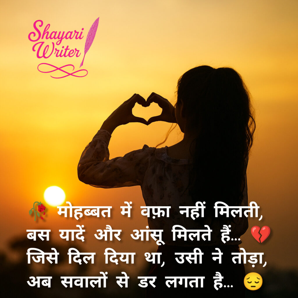 Sad shayari ЁЯеА рдореЛрд╣рдмреНрдмрдд рдореЗрдВ рд╡рдлрд╝рд╛ рдирд╣реАрдВ рдорд┐рд▓рддреА,рдмрд╕ рдпрд╛рджреЗрдВ рдФрд░ рдЖрдВрд╕реВ рдорд┐рд▓рддреЗ рд╣реИрдВ… ЁЯТФрдЬрд┐рд╕реЗ рджрд┐рд▓ рджрд┐рдпрд╛ рдерд╛, рдЙрд╕реА рдиреЗ рддреЛрдбрд╝рд╛,рдЕрдм рд╕рд╡рд╛рд▓реЛрдВ рд╕реЗ рдбрд░ рд▓рдЧрддрд╛ рд╣реИ… ЁЯШФ admin August 3, 2025 Author admin Continue Reading Previous Previous post: рдЖрдЬ ЁЯл╡ рддреБрдореНрд╣рд╛рд░реА рдпрд╛рдж ЁЯе░Next Next post: ЁЯТФ рдордд рдкреВрдЫреЛ рдХреИрд╕рд╛ рд▓рдЧрддрд╛ рд╣реИ рддрдиреНрд╣рд╛ рд░рд╣рдирд╛,рдЬреИрд╕реЗ рдЬрд╝рд┐рдВрджрд╛ рд╣реЛрдХрд░ рднреА рдорд░ рдЬрд╛рдирд╛… ЁЯШврднреАрдбрд╝ рдореЗрдВ рднреА рддрдиреНрд╣рд╛ рд╣реВрдБ,рдХреНрдпреЛрдВрдХрд┐ рдЬреЛ рдЪрд╛рд╣рд┐рдП рдерд╛, рд╡реЛ рдЕрдм рдирд╣реАрдВ рд╣реИ… ЁЯШЮ Leave a Reply Cancel replyYour email address will not be published. Required fields are marked *Comment * Name * Email * Website Save my name, email, and website in this browser for the next time I comment. Related News ЁЯТз рдЕрдм рдореЛрд╣рдмреНрдмрдд рд╕реЗ рднреА рдбрд░ рд▓рдЧрддрд╛ рд╣реИ,ЁЯТФ рдЯреВрдЯреЗ рджрд┐рд▓ рдХрд╛ рджрд░реНрдж рдлрд┐рд░ рдЬрд▓рддрд╛ рд╣реИ… November 10, 2025 ЁЯМЩ рд╡реЛ рдмрд┐рдЫрдбрд╝рд╛ рддреЛ рд╡рдХрд╝реНрдд рдердо рд╕рд╛ рдЧрдпрд╛,ЁЯТз рдкрд░ рдпрд╛рджреЛрдВ рдХрд╛ рд╕рд┐рд▓рд╕рд┐рд▓рд╛ рдЪрд▓рддрд╛ рдЧрдпрд╛… November 6, 2025